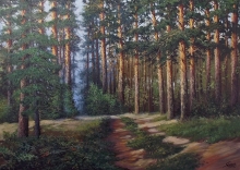 All my works are painted on a canvas in oils. Sometimes the palette knife is used.